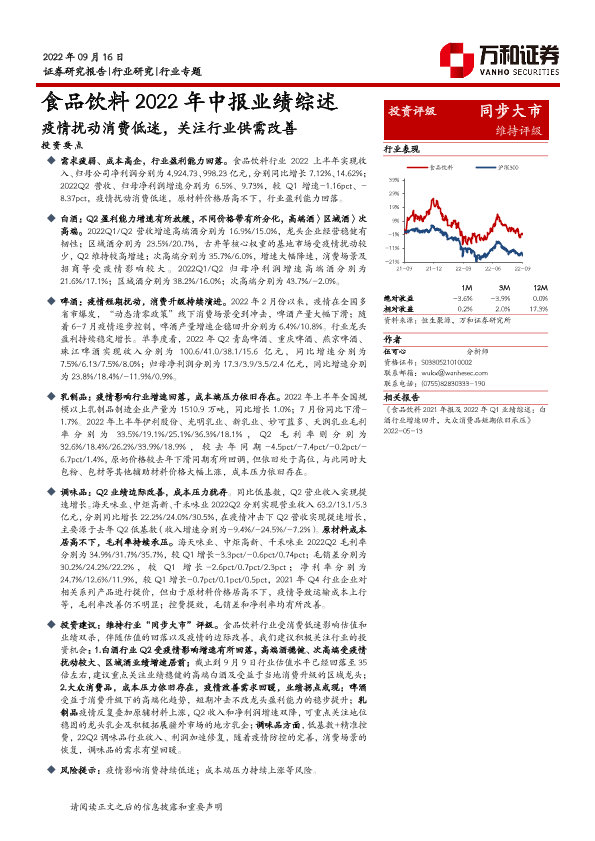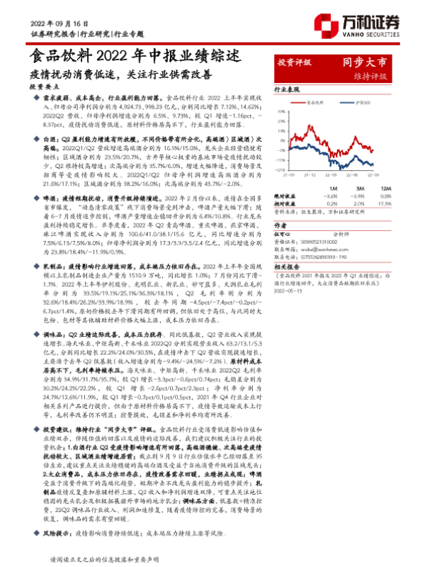 【万和证券】【20220916】食品饮料2022年中报业绩综述:疫情扰动消费低迷,关注行业供需改善-28页