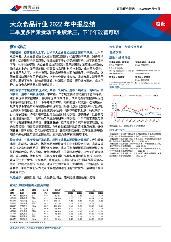 【国信证券】【20220919】大众食品行业2022年中报总结:二季度多因素扰动下业绩承压,下半年改善可期-22页
