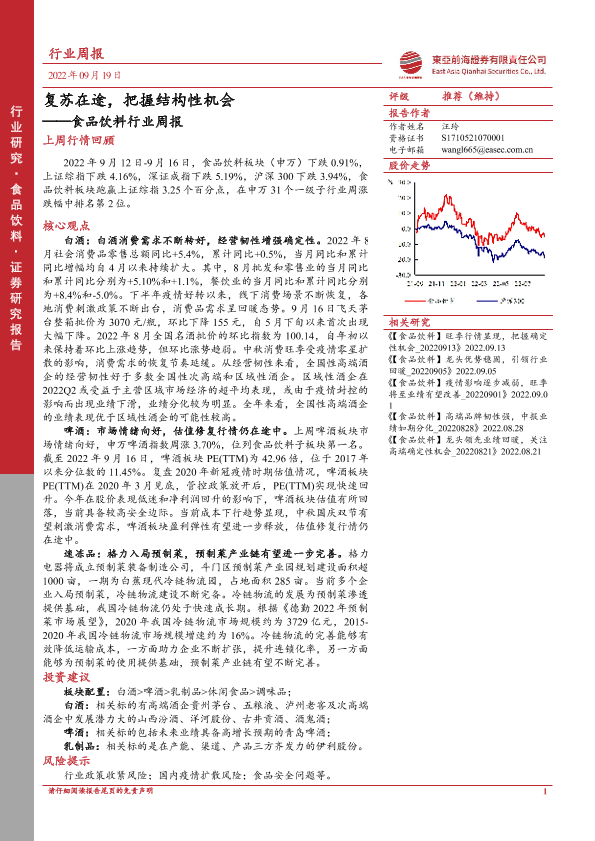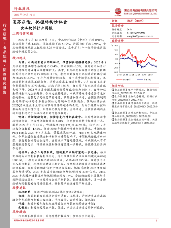 【东亚前海证券】【20220919】20220919-东亚前海证券-食品饮料行业周报:复苏在途,把握结构性机会-19页