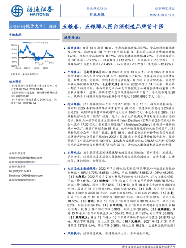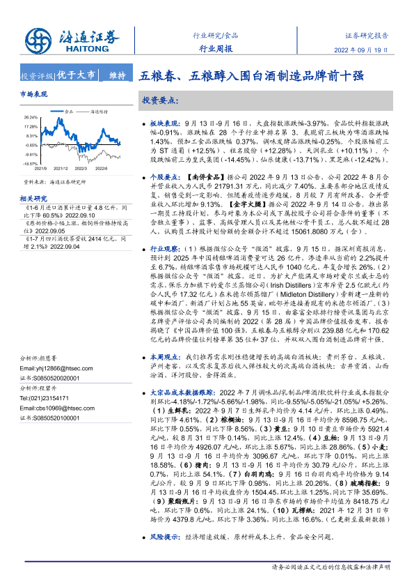【海通证券】【20220919】20220919-海通证券-食品行业周报:五粮春、五粮醇入围白酒制造品牌前十强-11页