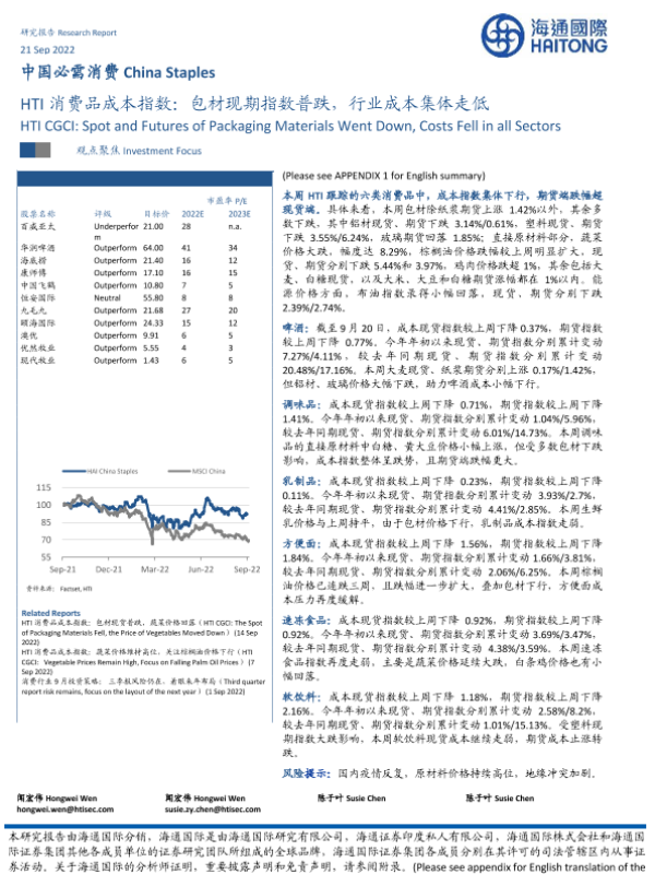 【海通国际】【20220921】HTI消费品成本指数:包材现期指数普跌,行业成本集体走低-16页