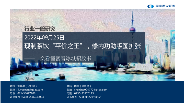 【国泰君安证券】【20220925】一文看懂蜜雪冰城招股书:现制茶饮“平价之王”,修内功助版图扩张-25页