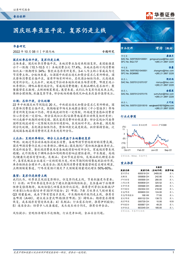 【华泰证券】【20221008】食品饮料专题研究:国庆旺季虽显平淡,复苏仍是主线-13页