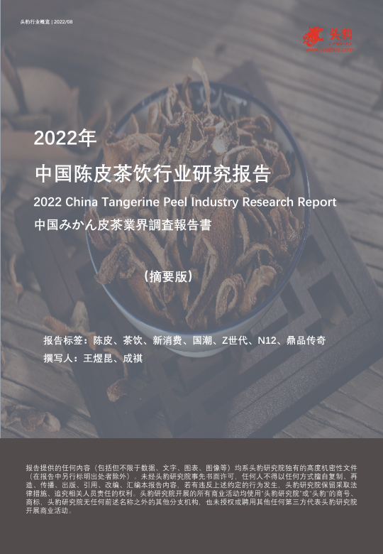 【头豹研究院】【20221008】2022年中国陈皮茶饮行业研究报告(摘要版)-10页