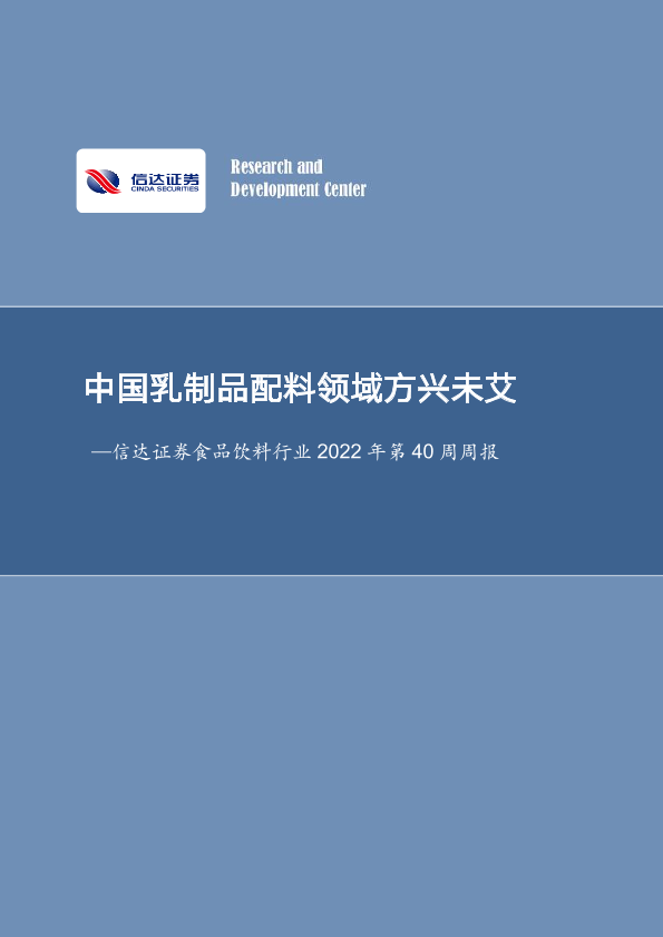 【信达证券】【20221008】信达证券食品饮料行业2022年第40周周报:中国乳制品配料领域方兴未艾-17页