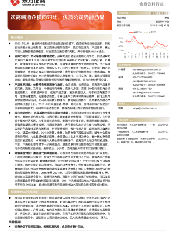 【东方证券】【20221010】20221010-东方证券-食品饮料行业深度报告:次高端酒企横向对比,优质公司势能凸显-27页
