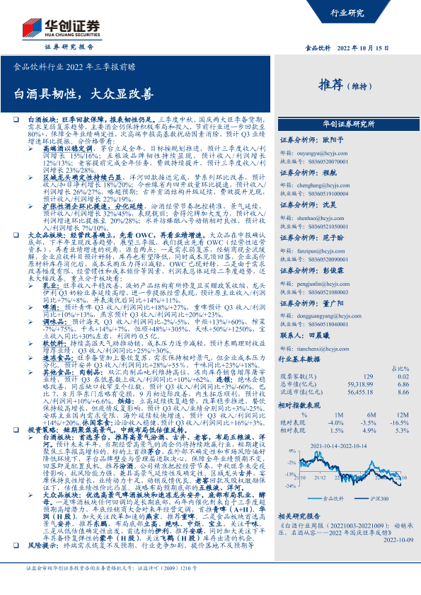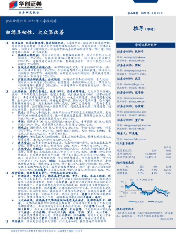 【华创证券】【20221015】食品饮料行业2022年三季报前瞻:白酒具韧性,大众显改善-18页