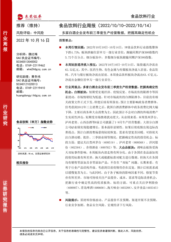 【东莞证券】【20221016】20221016-东莞证券-食品饮料行业周报:多家白酒企业发布前三季度生产经营数据,把握高确定性机会-17页