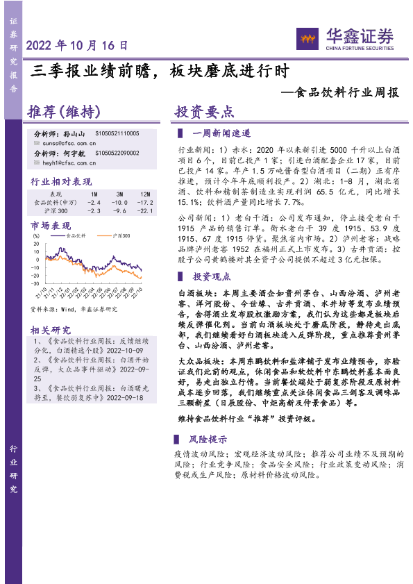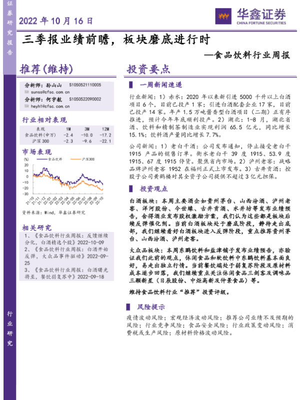 【华鑫证券】【20221016】20221016-华鑫证券-食品饮料行业周报:三季报业绩前瞻,板块磨底进行时-21页