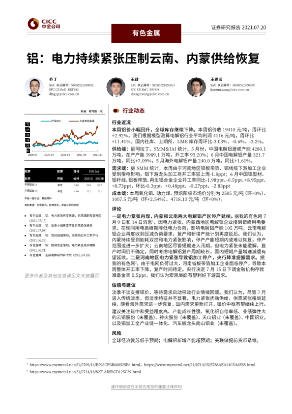 【中金公司】【20210720】有色金属行业铝:电力持续紧张压制云南、内蒙供给恢复-30页