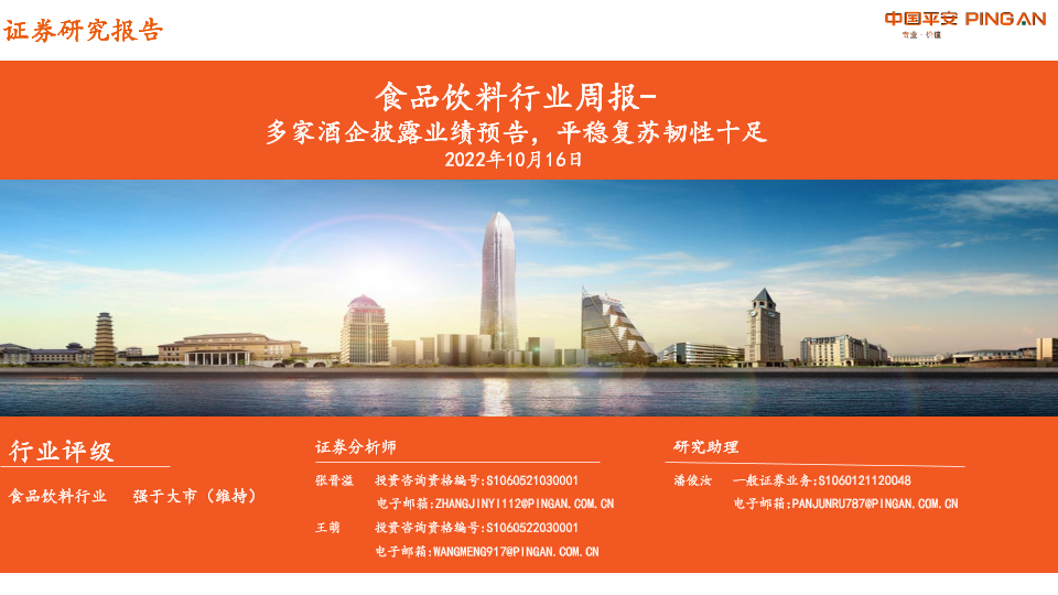 【平安证券】【20221016】20221016-平安证券-食品饮料行业周报:多家酒企披露业绩预告,平稳复苏韧性十足-14页