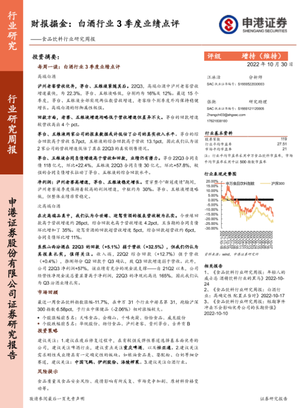 【申港证券】【20221030】20221030-申港证券-食品饮料行业研究周报:财报掘金:白酒行业3季度业绩点评-10页