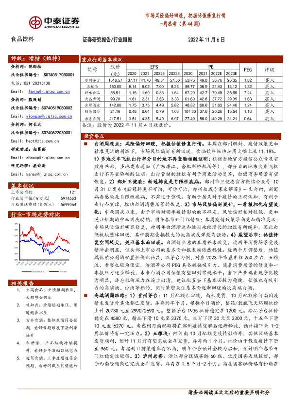 估值修复 市场走势 白酒行业 证券分析 食品饮料
