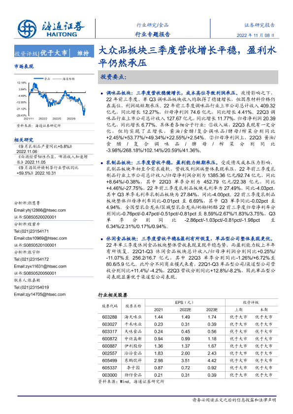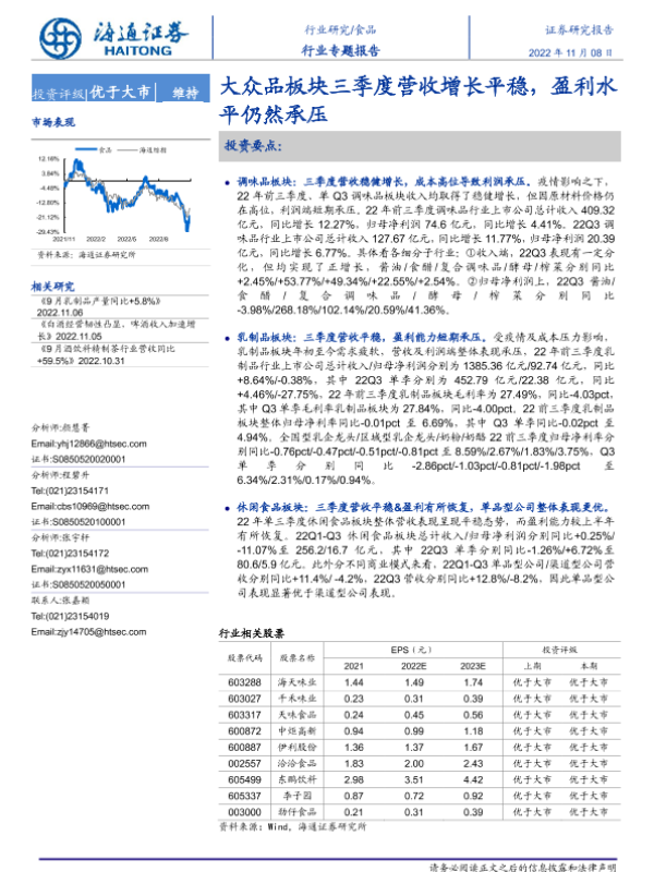 【海通证券】【20221108】20221108-海通证券-食品行业专题报告:大众品板块三季度营收增长平稳,盈利水平仍然承压-44页