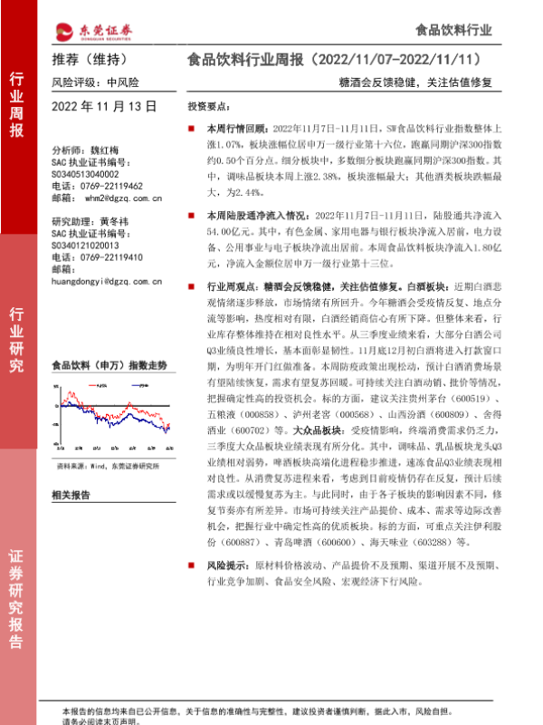 【东莞证券】【20221113】20221113-东莞证券-食品饮料行业周报:糖酒会反馈稳健,关注估值修复-14页