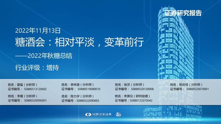 【国泰君安证券】【20221113】2022年秋糖总结:糖酒会:相对平淡,变革前行-22页