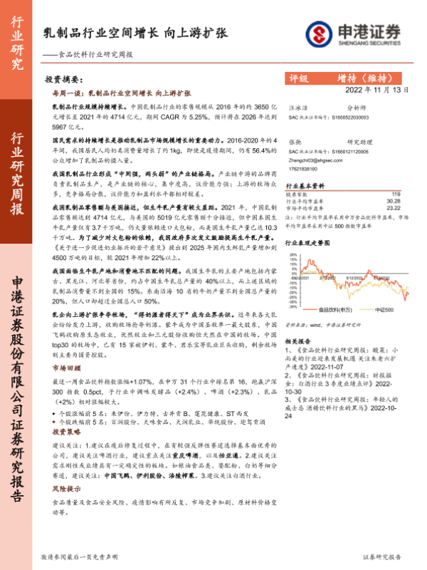 【申港证券】【20221113】20221113-申港证券-食品饮料行业研究周报:乳制品行业空间增长 向上游扩张-10页