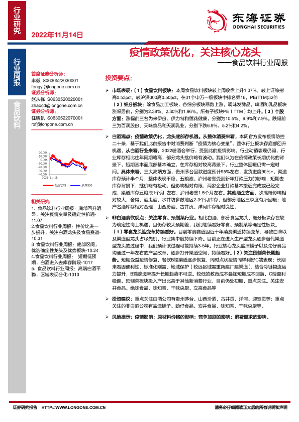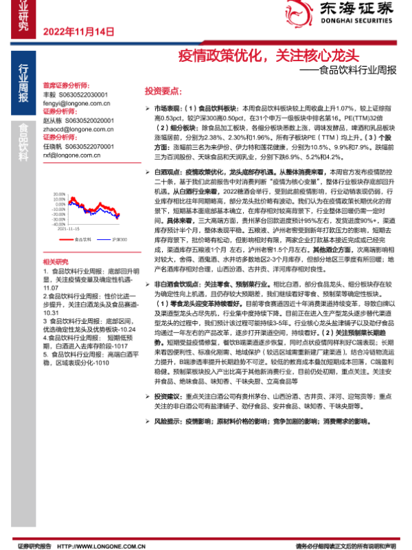 【东海证券】【20221114】20221114-东海证券-食品饮料行业周报:疫情政策优化,关注核心龙头-17页