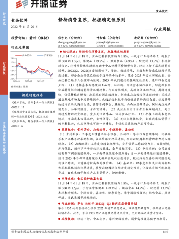 【开源证券】【20221120】食品饮料行业周报:静待消费复苏,把握确定性原则-10页