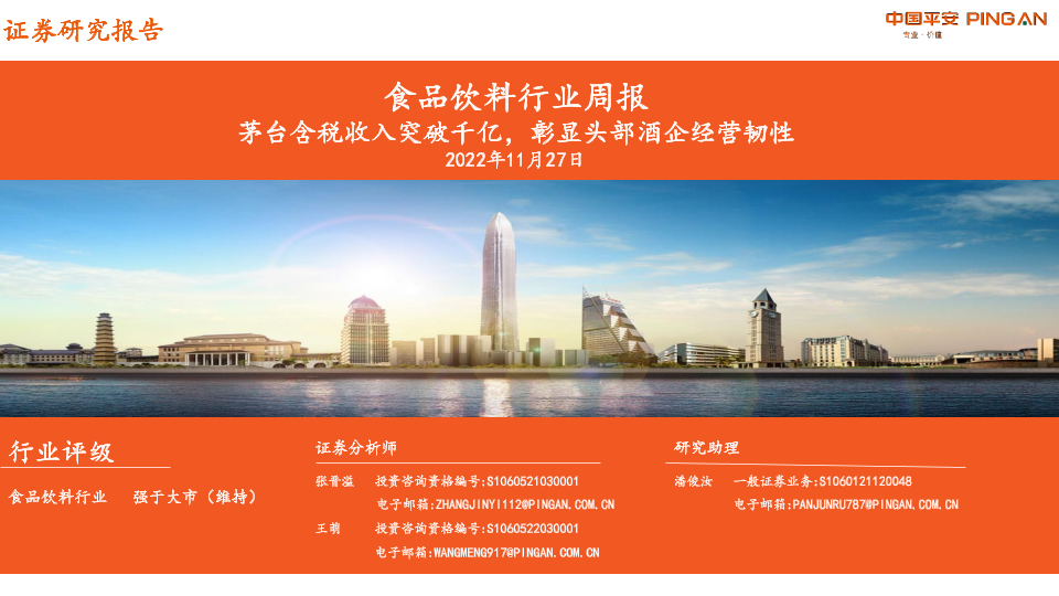 【平安证券】【20221127】20221127-平安证券-食品饮料行业周报:茅台含税收入突破千亿,彰显头部酒企经营韧性-14页