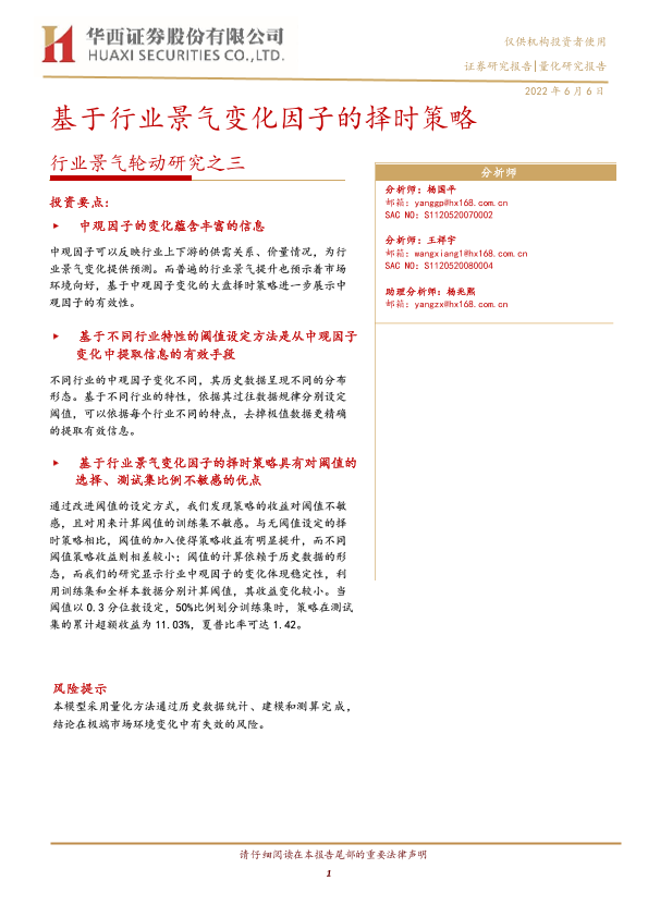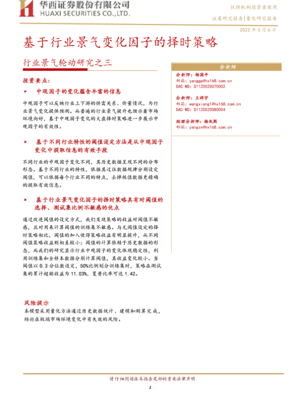 【华西证券】【20220606】行业景气轮动研究之三:基于行业景气变化因子的择时策略-15页