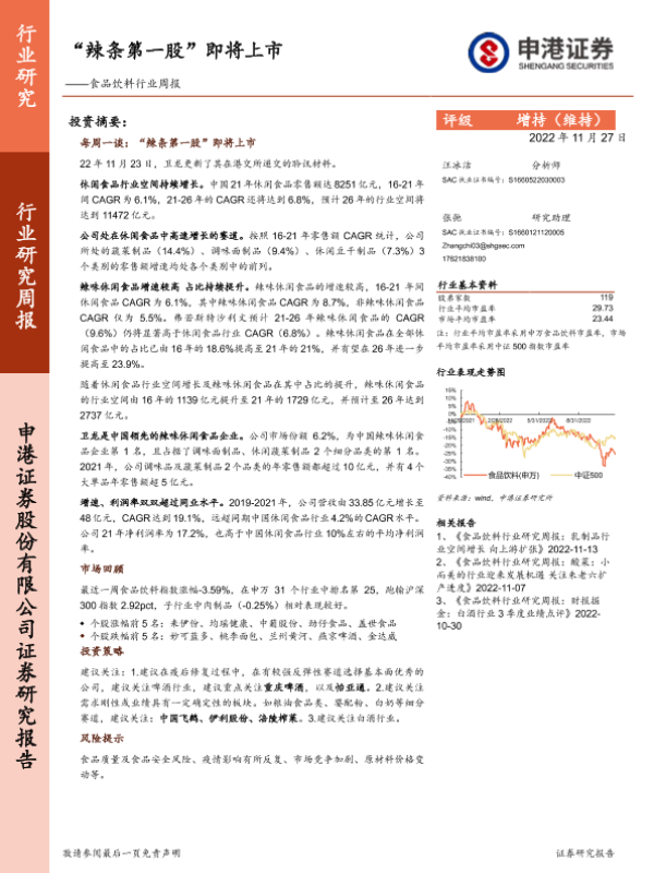 【申港证券】【20221127】“辣条第一股”即将上市——食品饮料行业周报-11页