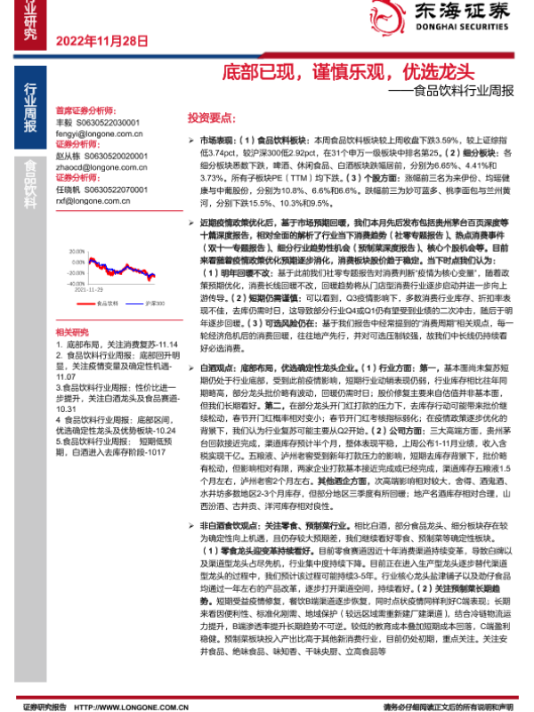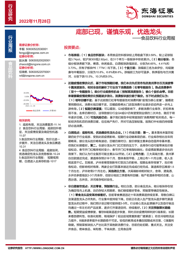 【东海证券】【20221128】20221128-东海证券-食品饮料行业周报:底部已现,谨慎乐观,优选龙头-17页