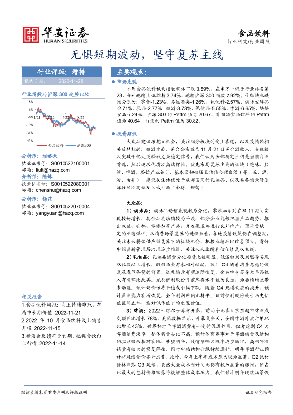 【华安证券】【20221128】20221128-华安证券-食品饮料行业周报:无惧短期波动,坚守复苏主线-18页