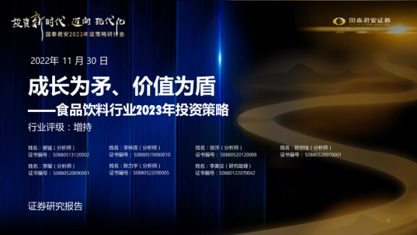 【国泰君安证券】【20221130】20221130-国泰君安-食品饮料行业2023年投资策略:成长为矛、价值为盾-62页