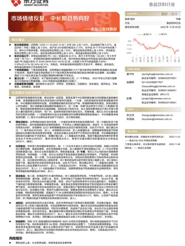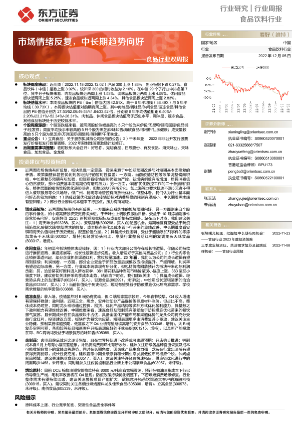【东方证券】【20221205】食品行业双周报:市场情绪反复,中长期趋势向好-13页