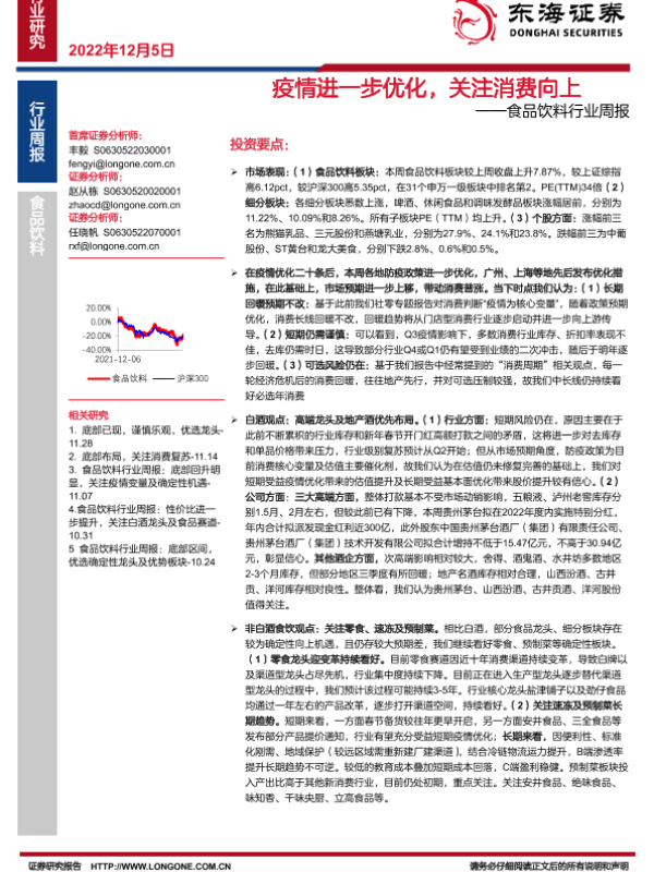 【东海证券】【20221205】20221205-东海证券-食品饮料行业周报:疫情进一步优化,关注消费向上-18页