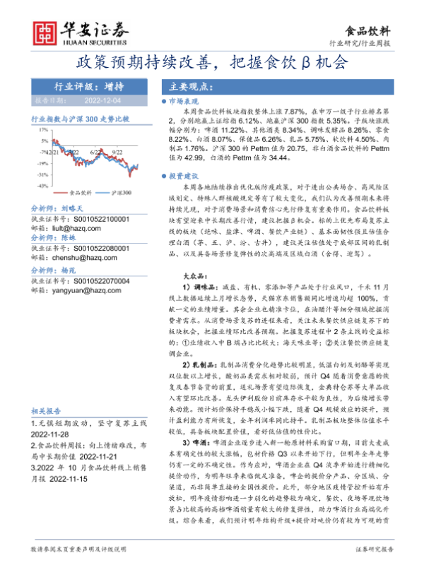 【华安证券】【20221204】20221205-华安证券-食品饮料行业周报:政策预期持续改善,把握食饮β机会-17页
