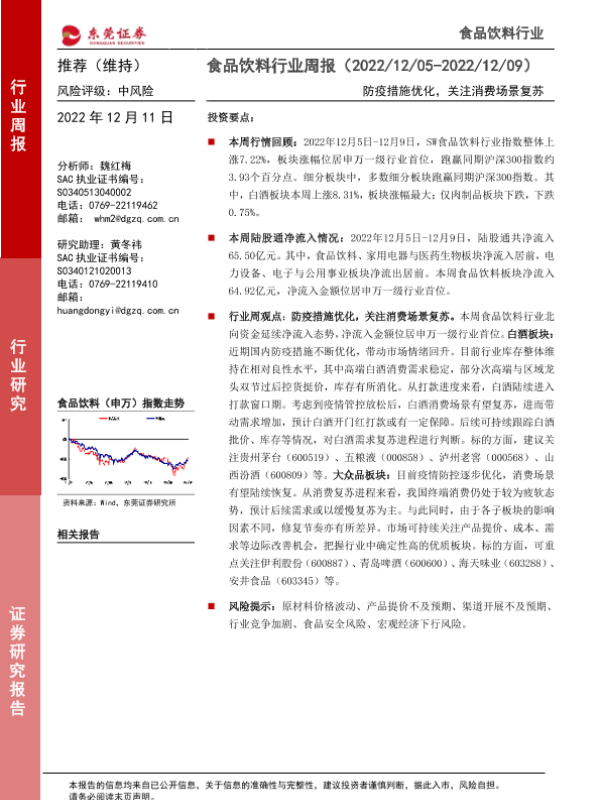 【东莞证券】【20221211】20221211-东莞证券-食品饮料行业周报:防疫措施优化,关注消费场景复苏-15页