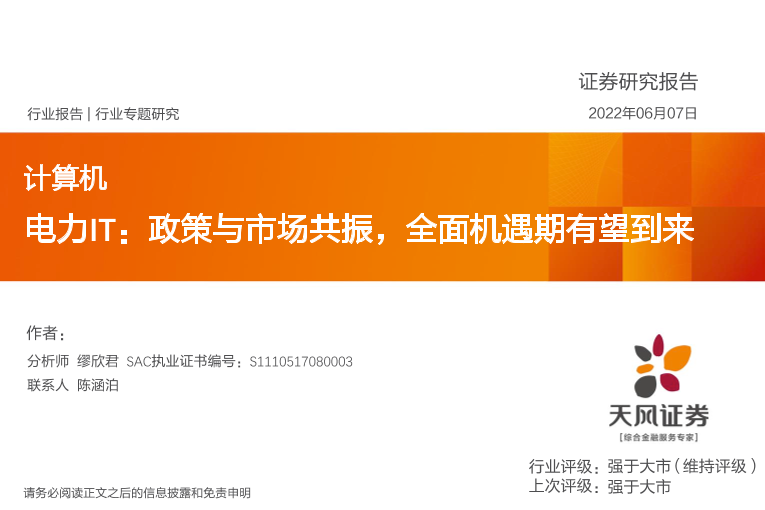 【天风证券】【20220607】计算机行业专题研究:电力IT,政策与市场共振,全面机遇期有望到来-38页