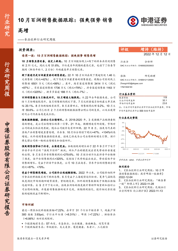 【申港证券】【20221212】20221212-申港证券-食品饮料行业研究周报:10月百润销售数据跟踪:强爽强势销售高增-11页