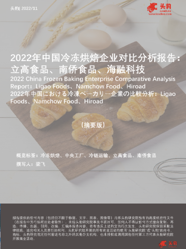 【头豹研究院】【202211】2022年中国冷冻烘焙企业对比分析报告:立高食品、南侨食品、海融科技-9页