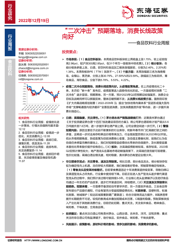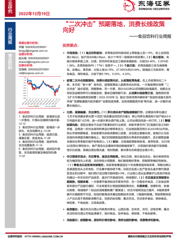 【东海证券】【20221219】20221219-东海证券-食品饮料行业周报:“二次冲击”预期落地,消费长线政策向好-17页