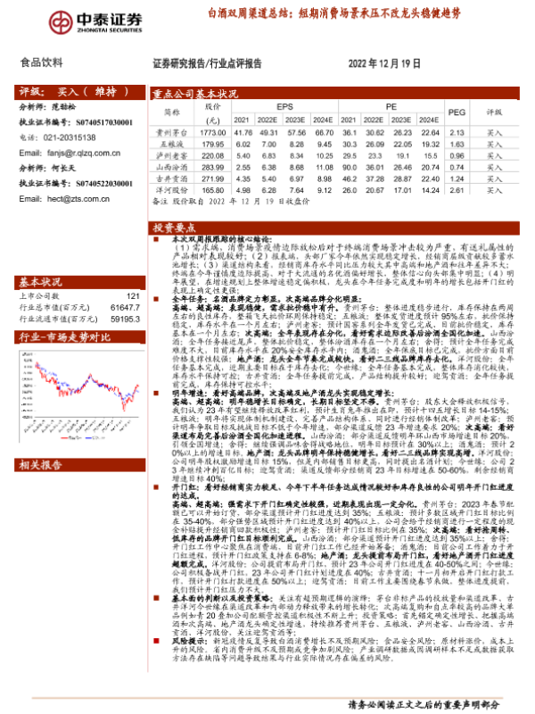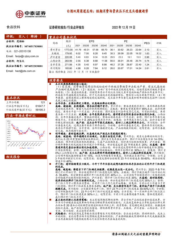 【中泰证券】【20221219】20221219-中泰证券-白酒双周渠道总结:短期消费场景承压不改龙头稳健趋势-11页