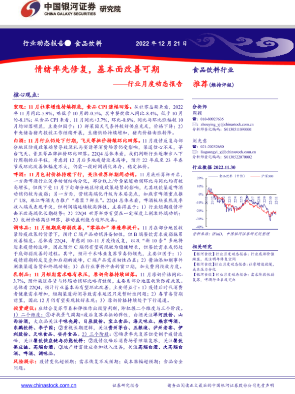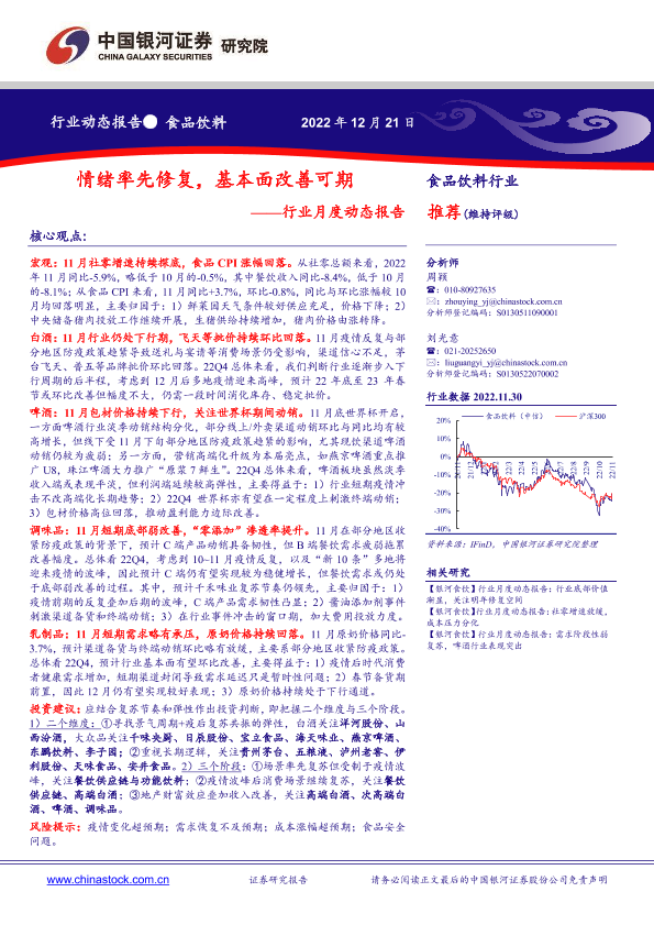 【银河证券】【20221221】20221221-中国银河-食品饮料行业月度动态报告:情绪率先修复,基本面改善可期-20页