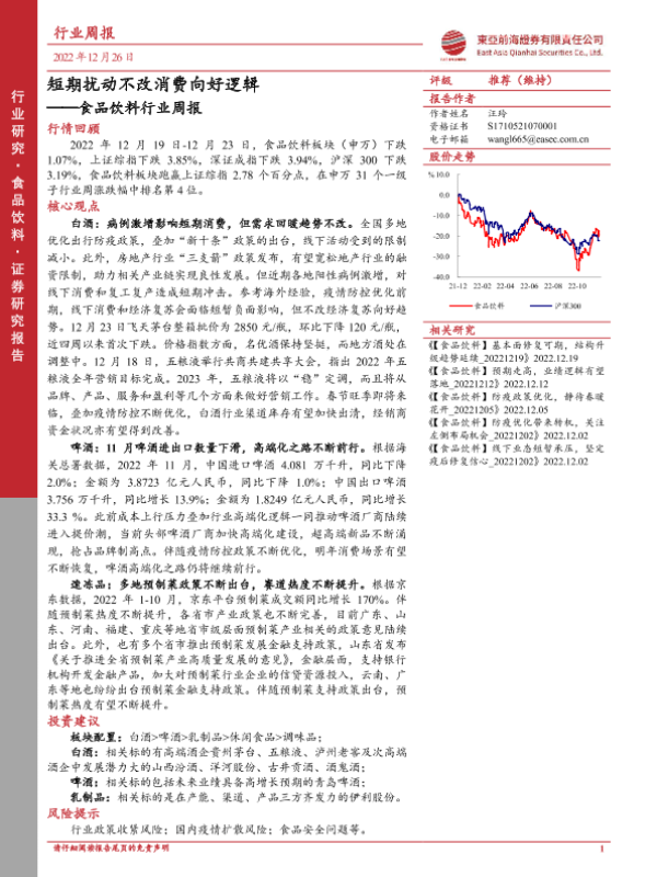 【东亚前海证券】【20221226】20221226-东亚前海证券-食品饮料行业周报:短期扰动不改消费向好逻辑-19页