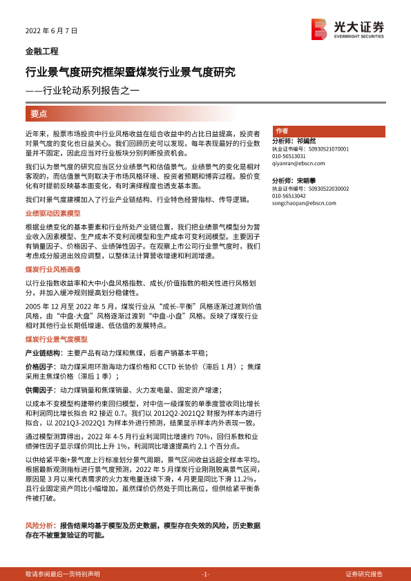 【光大证券】【20220607】行业轮动系列报告之一:行业景气度研究框架暨煤炭行业景气度研究-22页
