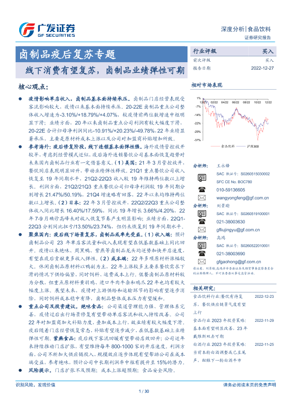 【广发证券】【20221227】卤制品疫后复苏专题:线下消费有望复苏,卤制品业绩弹性可期-30页
