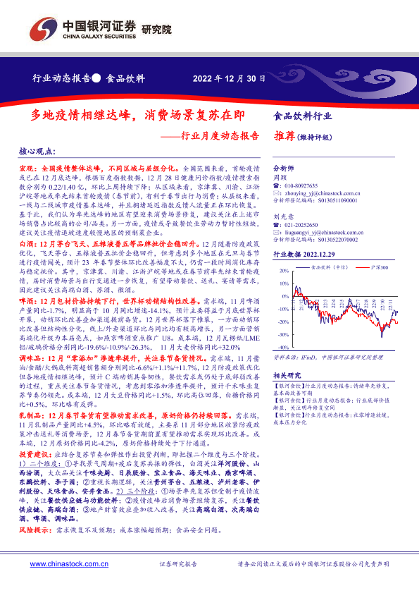 【银河证券】【20221230】20221230-中国银河-食品饮料行业月度动态报告:多地疫情相继达峰,消费场景复苏在即-21页