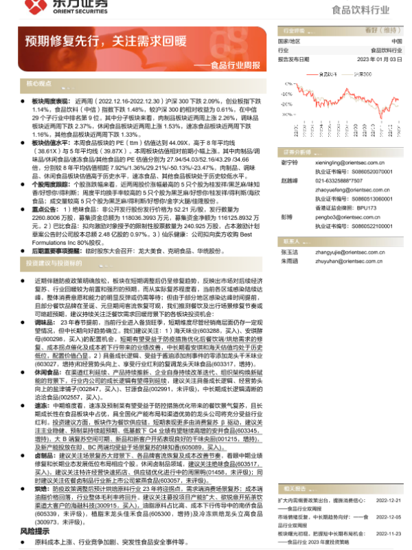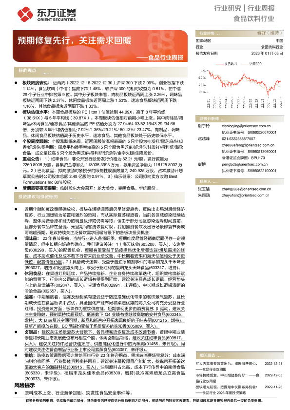 【东方证券】【20230103】20230103-东方证券-食品行业周报:预期修复先行,关注需求回暖-12页