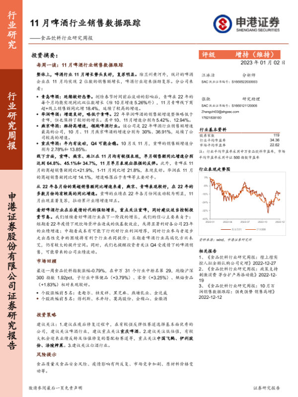【申港证券】【20230102】20230102-申港证券-食品饮料行业研究周报:11月啤酒行业销售数据跟踪-12页