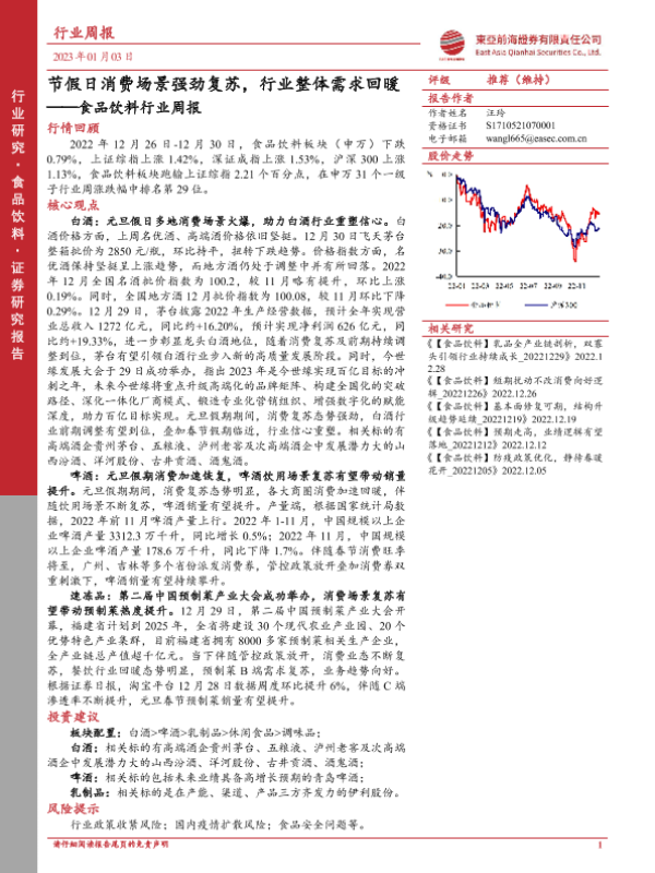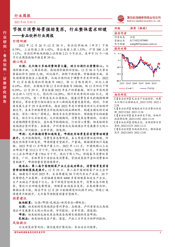 【东亚前海证券】【20230103】20230103-东亚前海证券-食品饮料行业周报:节假日消费场景强劲复苏,行业整体需求回暖-21页