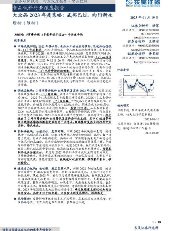 【东吴证券】【20230119】食品饮料行业深度报告:大众品2023年度策略:底部已过,向阳新生-18页