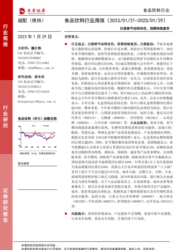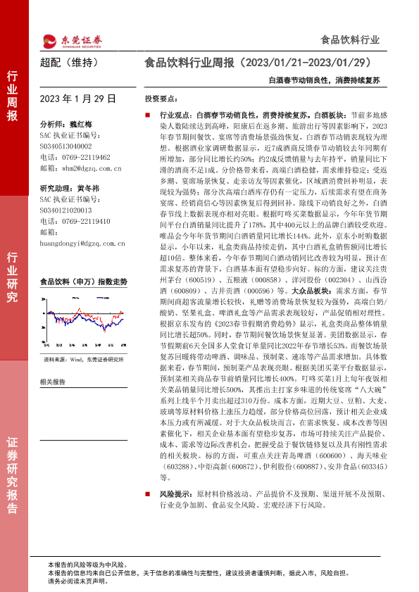 【东莞证券】【20230129】20230129-东莞证券-食品饮料行业周报:白酒春节动销良性,消费持续复苏-14页