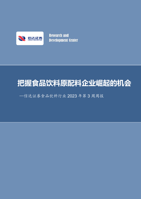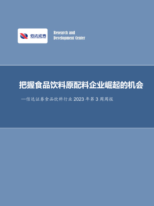 【信达证券】【20230129】食品饮料行业2023年第3周周报:把握食品饮料原配料企业崛起的机会-18页