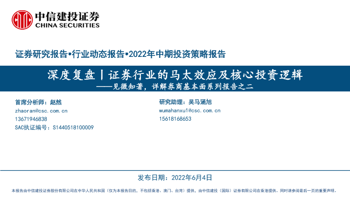 【中信证券】【20220604】证券行业深度复盘:见微知著,详解券商基本面系列报告之二,证券行业的马太效应及核心投资逻辑-42页